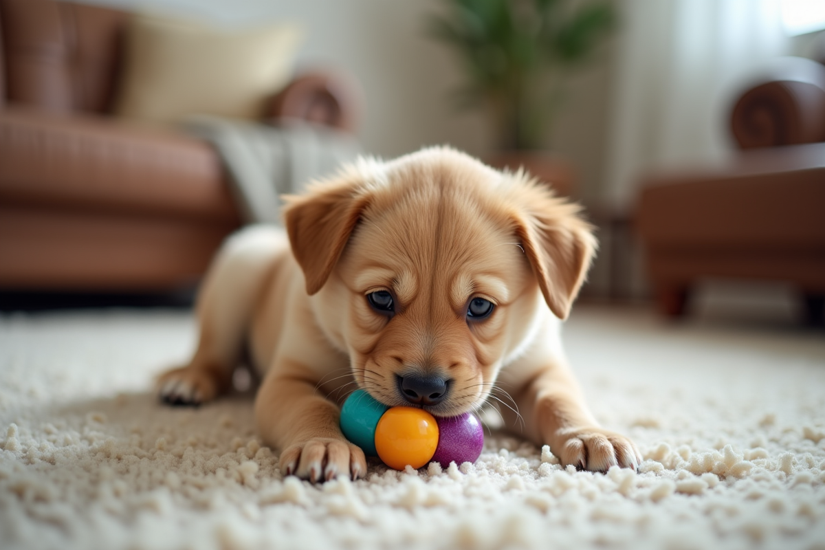 Assurez-vous que le chiot dispose de jouets adéquats. Santévet propose des assurances couvrant les soins vétérinaires, incluant des consultations comportementales. Les jouets doivent être variés et résistants pour maintenir l’intérêt du chiot.