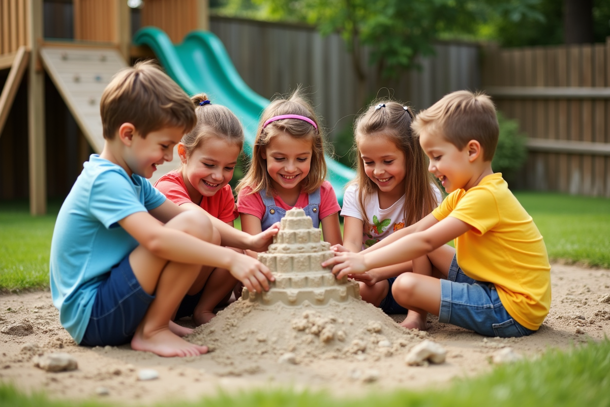 La durabilité des installations repose avant tout sur la qualité des matériaux : bois certifié, acier traité, PEHD, caoutchouc recyclé offrent longévité et résistance aux intempéries. Privilégier des matériaux écologiques et simples d’entretien limite l’impact environnemental et prolonge la vie de l’aire de jeux. Un bac à sable équipé d’un couvercle, par exemple, protège le sable des animaux et de la pluie, garantissant un espace propre toute l’année.