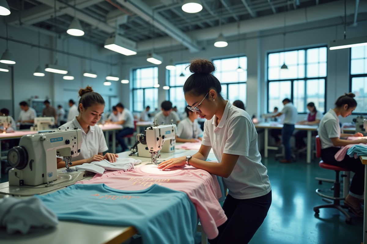 - Asie : la majorité de la production, avec des ateliers spécialisés sur le coton, le polyester, et des processus de fabrication maîtrisés du début à la fin.