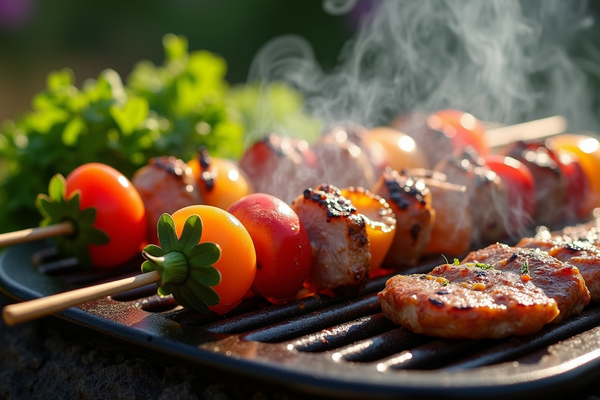 Choix des viandes et légumes : optez pour des morceaux de viande de qualité, tels que le filet de bœuf, le magret de canard ou les côtelettes d’agneau. Pour les légumes, privilégiez les poivrons, les courgettes, les aubergines et les champignons.